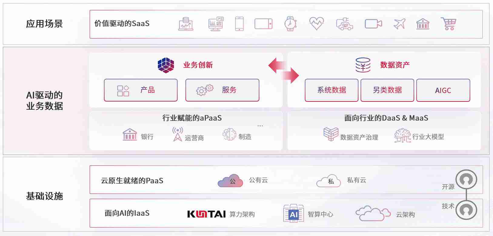 数字时代,,,围绕企业数字化转型的关键要素,,,神殿娱乐数码开创性的提出数云融合战略和技术体系框架,,,,着力在云原生、、、数字原生、、、AI原生和信创产业上架构产品和服务能力,,,为处在不同数字化转型阶段的快消零售、、、汽车、、、、金融、、、医疗、、政企、、、、教育、、、、运营商等行业客户提供泛在的敏捷IT能力和融合的数据驱动能力,,,,构建跨界融合创新的数字业务场景和新业务模式,,助力企业级客户建立面向未来的核心能力和竞争优势,,,,全面推动社会的数字化、、、智能化转型升级。。